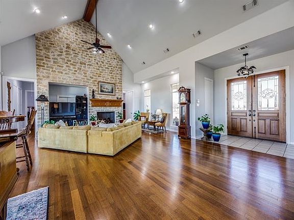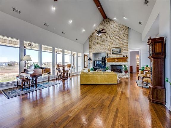 See tour links for 3D Matterport. High ceilings,open floor plan & 8.5acres offer tranquil space w plenty of room to breathe & unwind.This home boasts hardwoods,plenty of light & abundant storage.Spacious master secluded w bckyrd view & luxurious bath.Secondary bdrms generously sized & split on either side of central living area,allowing you to enjoy 1 story living.Charming spiral stair leads to gm rm upstairs.Thoughtful details such as built-in desks,well-planned closets & indoor switch to control Christmas lights.Wide halls & doors add to spacious feel & accommodate wheelchair if needed.Adjacent to this home is a 4000sq ft,fully plumbed workshop with carports on either end.