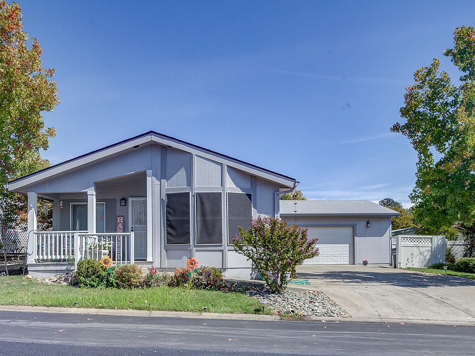 Move right into this charming home in Redding's desirable Los Robles Mobile Home Park, a 55+ community. Known for its quiet, clean, and beautifully landscaped environment, this community offers residents a peaceful lifestyle with convenient city services and amenities including a clubhouse and a pool.