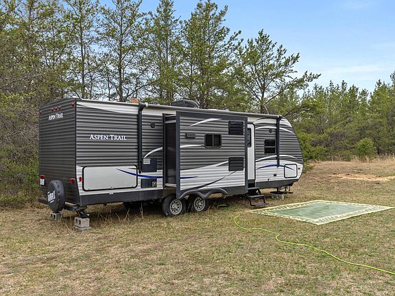 Discover the perfect blend of comfort, convenience, and natural beauty at 880 W Dusty Road in Irons, Michigan. This well-maintained property offers a 2017 Aspen camper, providing a cozy retreat for those seeking a getaway in the heart of Northern Michigan. The camper is complemented by added electricity on the lot, enhancing the camping experience with modern amenities.