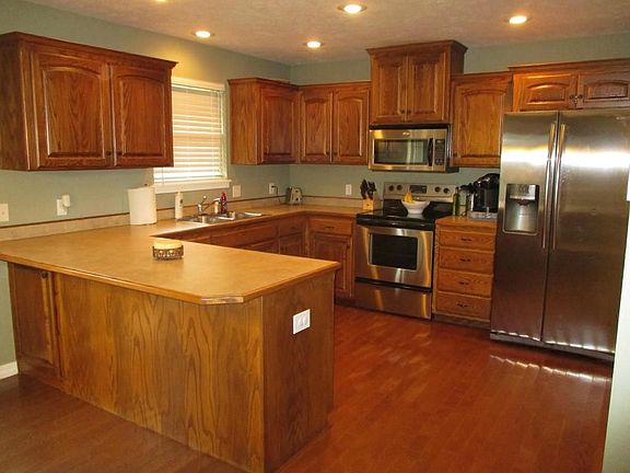 Darling 4 bedroom 2 bath home located in desirable Nixa neighborhood. Fabulous open floor plan with a kitchen the cook in the family will fall in love with! Lots of beautiful cabinets and storage. Hardwood floors here.Spacious Master suite offering large bath with double sinks, jetted tub and walk in shower. Huge walk-in closets too! The remaining 3 bedrooms feature trayed ceilings, roomy and bright.Backyard is privacy fenced and the perfect size for family fun.This neighborhood is well tended, showing pride in ownership. Move in ready! Do not miss this one!