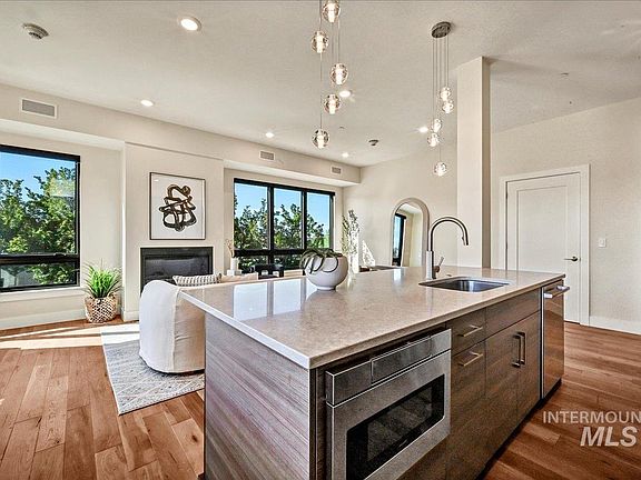 Don’t miss this rare opportunity to own a 3-bedroom, 3-bathroom Afton 2 condo! The Afton is situated in the cultural center in the heart of downtown Boise and it offers shared community spaces, including a clubhouse, outdoor patios, dog wash and potty areas, a rentable guest room, and bike storage and additional owner storage in the garage. This almost-new unit boasts a split floor plan with a private master suite and en-suite guest room, as well as a pantry. The southwest-facing corner location allows for ample natural light. In addition to the thoughtful design, this unit is loaded with upgrades, such as hardwood floors throughout, heated floors in the master bath, a custom closet package, custom lighting, remote-controlled blinds, two HVAC units, and two patios. The two deeded parking spaces can also be rented or sold. Are you ready to experience luxury living at The Afton?