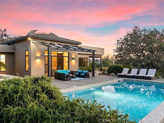 GORGEOUS VIEWS, INFINITY POOL AND OWNED SOLAR!! This 3-bedroom, 3.5-bathroom home is a masterpiece, nestled against Bidwell Park with panoramic views of Upper Bidwell Park, Bidwell Golf Course, and the coastal mountains. Situated on 1.39 acres, this 4,174 SQFT residence offers an array of premium features and breathtaking natural scenery. As you approach, you'll be greeted by beautiful, mature landscaping designed to seamlessly blend with the Bidwell Park environment. The home boasts an infinity saltwater pool & waterfall, an in-ground saltwater jacuzzi, owned solar panels, along with an oversized 3-car garage and a game room for endless entertainment. Inside, large windows flood the living spaces with natural light, while a huge slider in the living room gives access to the back patio, perfect for enjoying the stunning views. The living room features high ceilings and a beautiful ledger stone gas fireplace. Adjacent to the living room is an extra-large office, complete with built-in cabinets, bookshelves, and ample storage. The kitchen itself is a chef's dream, featuring soapstone countertops, a large stainless steel sink, stainless steel appliances, a gas range, a Subzero refrigerator, and ample cabinet space. The primary suite is a true retreat, boasting a HUGE walk-in closet with built-ins and a gas fireplace. The primary bathroom is elegantly appointed with a dual-sink vanity and modern wall-mounted faucets, a SPACIOUS shower with park views, and a large jacuzzi tub surrounded by beautiful large-format marble floors and walls. There are two generously sized guest bedrooms and a guest bath with a large walk-in shower. The game room is an entertainer's paradise, featuring a 160" 4K projection TV with 9 speakers, electric fireplace, pool table, dartboard, and a full bath with a steam shower. Additional amenities include a temperature-controlled, 480+ bottle wine cellar and built-in speakers throughout the home and patio. The backyard boasts a main patio with spectacular canyon views, providing a serene backdrop while enjoying the luxurious infinity saltwater pool. A second patio, ideal for entertaining, includes a built-in BBQ with a sleek concrete counter and a bar refrigerator, making it the ultimate spot for hosting gatherings. Finally, the oversized 3-car garage is equipped with a rapid EV charging station and plenty of storage, making this home not only beautiful but also practical and eco-friendly.