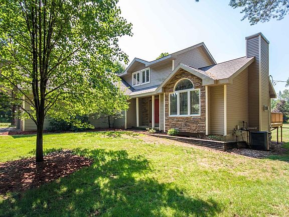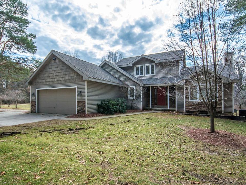 Spectacular home located on 3.6 Acres of peace and privacy with wooded views and large windows providing tons of natural light! This home is like new.Brand new high-end hardwood floors throughout the main level. Large living room with vaulted ceilings, gas fireplace, and sliders leading to large deck. The main floor also features a beautiful custom kitchen with new cabinets, center island, and hard surface countertops. Gorgeous open dining room with French doors leading to a four-season room,half bath and laundry/mud room. The main floor master boasts walk in closet and master bath with soaking tub. Upstairs are two nice size bedrooms and new bath.Lower level is finished with all new flooring, three additional bedrooms and large bath. Professional landscaping and underground sprinkling. Please note that taxes are currently non-homesteaded.