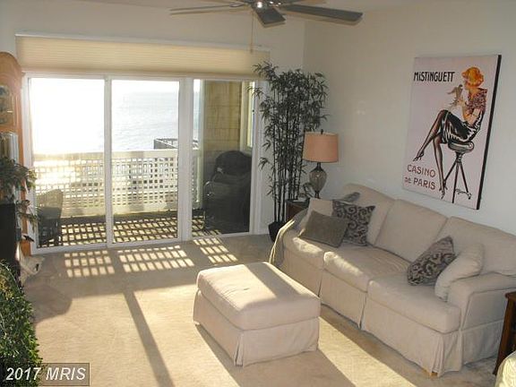 WATCH THE SUNRISE OVER THE CHESAPEAKE BAY. THIS TWO BEDROOM TWO BATHROOM CONDO HAS A SPECTACULAR VIEW OF THE BAY. KITCHEN RECENTLY REMODELED WITH GRANITE COUNTER TOPS AND UPDATED APPLS. STEP DOWN INTO THE SUNKEN LIVING ROOM WHICH LEADS TO THE COVERED BALCONY. BUILTIN FLOOR TO CEILING ARMOIRE IN THE MASTER. HARDWOOD FLOORS. COVERED PARKING. STROLL THE BOARDWALK TO RESTAURANTS, BEACH AND SHOPPING.