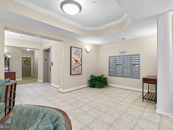 Enjoy a low maintenance lifestyle in a secure elevator condominium building in the gated 55+ age-qualified Gatherings at Jefferson Place community hosting this 2 bedroom and 2 bath home with a 1-car conveying garage! An elegant lobby sets the stage for this sunlit home featuring freshly painted interiors, LVT flooring, an open floorplan with generous closet space, a laundry room, and a foyer entry opening to the kitchen boasting 42" maple cabinetry, sleek counters, a stainless steel KitchenAid appliance suite, and a pass-through window to the dining area. An open dining room flows to an enhanced living room capped by a deep tray ceiling and brightened glass slider access to a private balcony. Owner's suite presents lighted ceiling fan, a tray ceiling over the sleeping area, a sitting room with a trio window view, a walk-in closet, and a private bath with a dual sink vanity and a glass enclosed shower. Amazing location across from Long Gate Shopping Center, convenient to golf courses, parks, shopping, dining, commuter routes, BWI airport, and more! 1 assigned garage spot conveys [letter G]