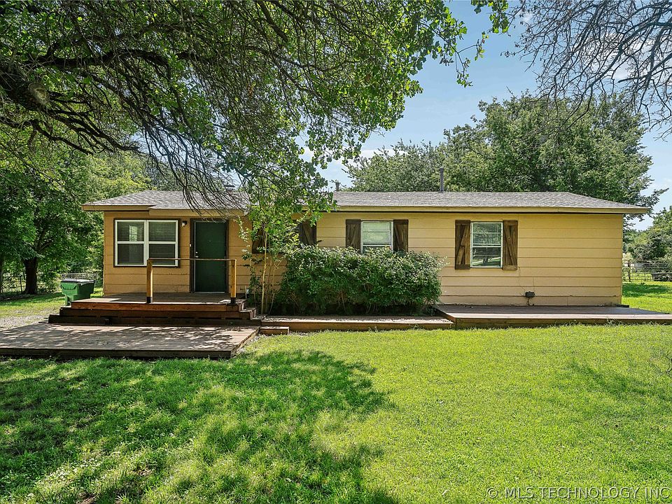 Charming home on acreage in a highly desired area! Enjoy the peace and quiet that country living offers while being only 35 minutes away from Tulsa. This property sits less than a mile from HWY 16 and less than 2 miles away from HWY 75, all while being secluded and offering a great amount of acreage for anyone wanting to start homesteading, have horses, chickens, or goats. There is an endless amount of opportunities on this place. The home offers multiple beautiful decks, two large bedrooms, an open concept kitchen and living area, one full bathroom, a half bathroom in the master, and an extra room that could be used as an office or extra family room. Enjoy the stunning woodwork throughout the entire home, a pantry, and a large utility room gives that its next owners a great amount of space for all their belongings. The exterior provides a detached garage with an abundant amount of space and storage, along with a recently built barn in superb condition for horses, livestock, or just extra storage space. Don’t miss your chance to purchase a stellar property in a beautiful location! Panels on property are negotiable.