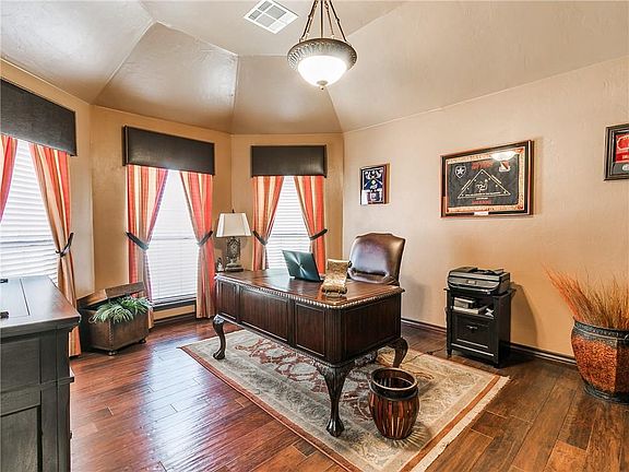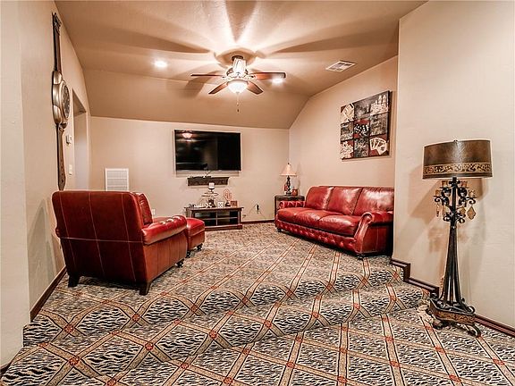 Looking for Piedmont Schools and a GREAT home? This one boasts not 1, but TWO bonus living areas upstairs, plus a bedroom and full bath. Beautiful kitchen with cooktop in it's own bricked alcove! Home includes a Study, PLUS an extra office near kitchen! Multitude of closets and cabinet storage. You'll enjoy the time spent in your very own Theatre Room with your favourite movies and snacks! Crown moulding and solid doors throughout. Quick time to IKilpatrick Tpk, NW Expressway, Martin Park Nature Center, and the Metropolitan Library. Just minutes to Lake Hefner for boating, walking or bicycling. Granite stone masonry tile wood carpet fireplace gas log custom storm shelter corner game bar