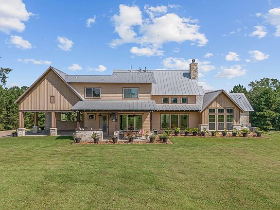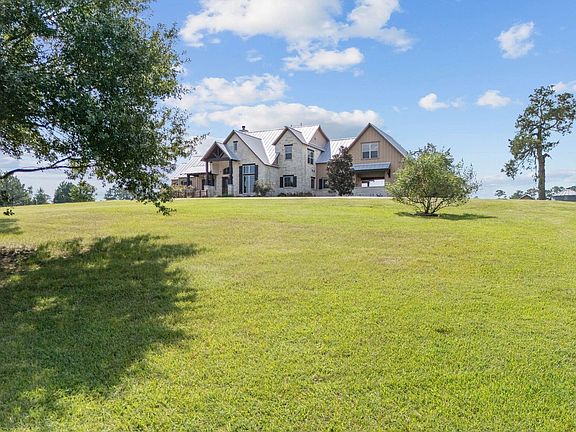 Experience the best of country living on this stunning 28.21-acre estate. This two-story home features 4 bedrooms and 3.5 baths, with the primary suite on the main level offering a spa-style bath with jetted tub, separate shower, and walk-in closet. Upstairs, each secondary bedroom includes its own en-suite bath, along with a spacious game room. The gourmet kitchen boasts granite countertops, a walk-in pantry, pot filler, and custom cabinetry with under-cabinet lighting, flowing into the dining and living areas with crown molding, high ceilings, and a cozy fireplace. Additional spaces include a home office and welcoming entryway. Outdoors, the property is fully fenced with a barn/stable, workshop, outdoor kitchen, covered porches, and a private gated driveway. Horses are welcome, and there’s ample parking with a porte-cochere and RV/boat storage. Conveniently located off Highway 150, you’ll enjoy easy access to I-45, Lake Livingston, and the scenic views.
