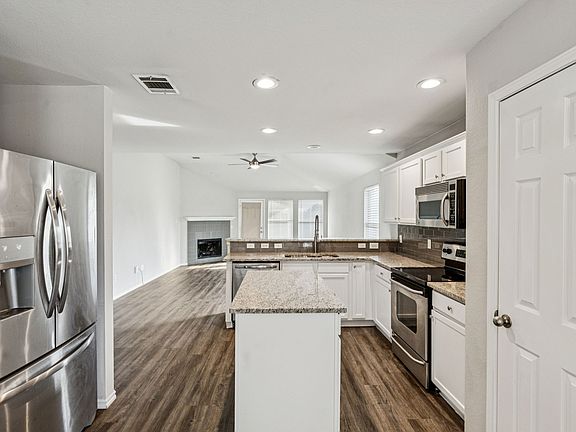 Cozy fireplaceLovely covered patioInviting family roomStainless steel appliancesCorner lotHuge walk-in closetGourmet kitchen
