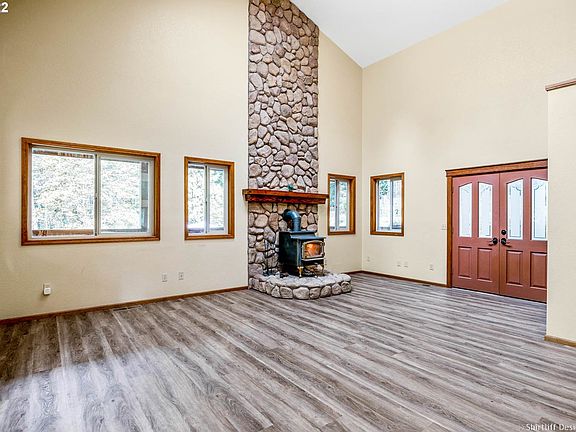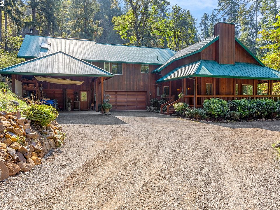 A rare jewel on Tiki Ln. This amazing home features an open kitchen, 3 living spaces, 3 full bathrooms, 4 bedrooms and an office! New flooring, and fresh interior paint. There is a 3-car garage, with the 3rd bay setup as a wood shop, PLUS an oversized carport! The house is very private nestled in almost 4 acres of nature with walking paths, a seasonal creek and more. A metal roof, wood siding, and covered porch complete the exterior.