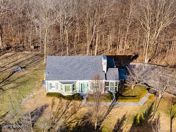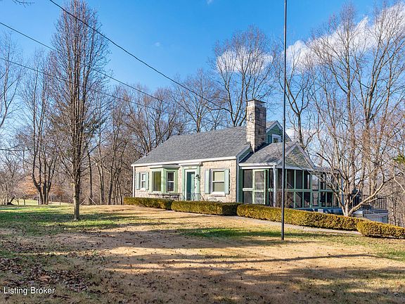A slice of country living within the city limits! Nestled behind a row of tall evergreens, this farmhouse-style cottage is situated upon .73 private acres of mostly cleared land with views of forest and treetops at the rear of the property. A long, extra wide driveway with plenty of parking leads up to the home. At the front of the home is a large front yard with mature landscaping. The curb appeal of this farmhouse-style cottage is simply charming with a pristine Bedford stone facade, freshly painted trim, and newer windows. Upon entering the front of the home, you are greeted with a view into the open and sunny Living Room and Kitchen with solid Oak hardwood flooring, 1940s style archways, and a stone wood-burning fireplace. The Living Room is open to the Kitchen, which features butcherblock countertops, a breakfast bar, deep basin sink, pantry closet, and stainless-steel appliances including a dishwasher, built-in microwave, and double oven. Just off this space is a screened-in porch; a perfect spot for morning coffee or to unwind and admire the serene forest views. The screened-in porch also exits to the front walkway as well as a grilling patio. To the left of the front entry of the home is the Dining Room with a bay window allowing tons of natural light through, and a clever wall-mounted dining table for four. Through a sliding glass and metal barn door is the conveniently located first floor laundry room, with space for a side-by-side washer/dryer and includes a sink and ample cabinet and countertop space. There is an exterior exit to the side of the home from the laundry room. Towards the rear of the home is a private hallway leading to a full bathroom with vanity and tub/shower and the main bedroom on the first level, also featuring gleaming Oak hardwood flooring. Take the stairs to the second level to another bedroom, with windows at each end and a wall-mounted HVAC mini split system, ensuring you will be comfortable throughout all four seasons. The basement level has been finished to add a Family Room for more living/entertaining space and includes a full bathroom adjacent to another room that is currently used as an extra bedroom or would make a fantastic bonus room. Through the basement is an unfinished storage area that leads into the one-car lower-level garage, accessible from the driveway. This property is truly unlike any other in the 40241 zip code and is within close proximity to many schools, groceries and the Paddock Shops. If you're searching for a slice of country living within the city limits, your private oasis awaits!