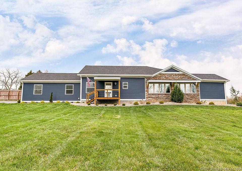 Wow Wow Wow! Check out this amazing, private home site in Charlestown sitting on almost 12 acres! This beautiful 3 bedroom, 2 bathroom open floor plan home overlooks the most amazing lake! 2.5 acre fully stocked! Large windows in the Master Bedroom with Lake View. Large, spacious walk-in closet in Master as well. Gorgeous Kitchen with lots of cabinet space. Tall ceilings in the Livingroom with 2 celling fans. So peaceful! Large 2-car Attached Garage. It also has 2 large pole barns .. 1 has a full bathroom in it! This home is super secluded offering a nice private retreat with gates driveway! FIBER HIGH SPEED INTERNET... The Crawl space is encapsulated as well! Your dogs can run freely with the DogWatch underground invisible fence. You don't want to miss this amazing home!! sq. ft. is approximate if critical buyers should verify.