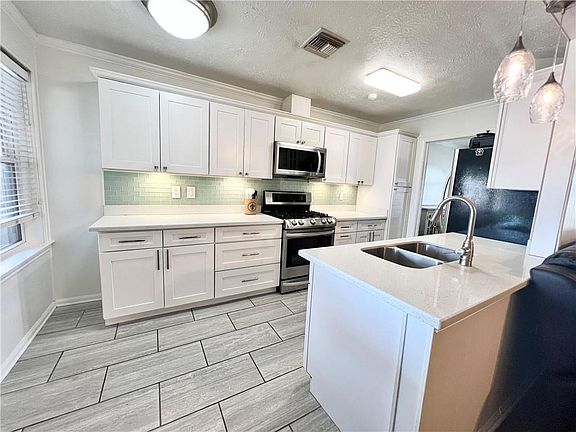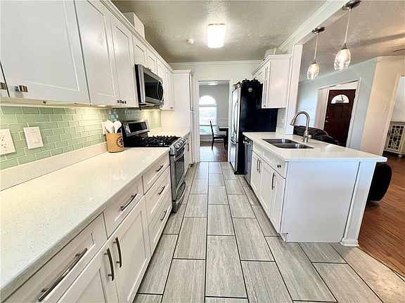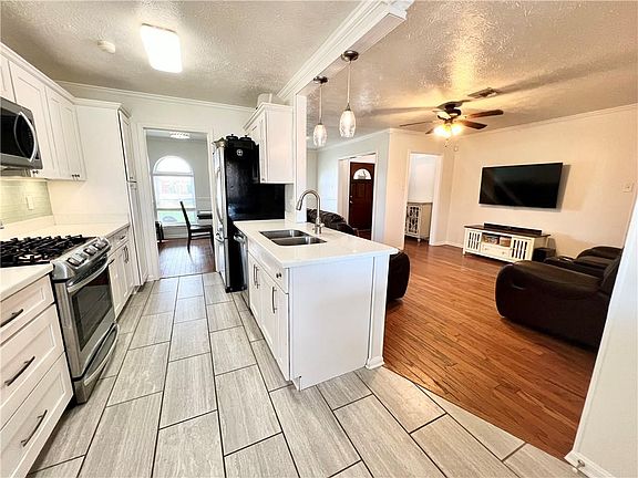 Adorable 3 Bedroom, 2 Full Bath home in a Desirable River Ridge Location. Entire Interior has just been freshly painted. This home Features an Updated and Expanded Kitchen with plenty of Cabinets, Under Cabinet Lighting, Beautiful Tile Backsplash and Stainless Steel Appliances. Entertaining will be a Delight with its Open Floor plan and easy flow between the Den, Dining, Kitchen and Backyard. Large Private Backyard with a partially Covered Patio. No Carpet! Hardwood Floors Throughout all Living Areas and Tile in Wet Areas. Updated Hall Bath includes a Jetted Tub with a Tile Shower Surround. Full Shower in the Primary Bathroom. Another big Perk is its One Car Garage and a Long Double Driveway with Plenty of Space for Parking. X Flood Zone - Very Low Flood Insurance ($673) & Low Homeowners (per Mock Quote). Move in Ready 3 Bed/2 Full Bath homes with an Updated Kitchen, Large yard and a Garage are Rare at this Price Point. This Home is Priced to Sell...So don't Delay!!