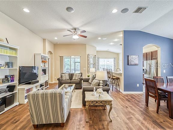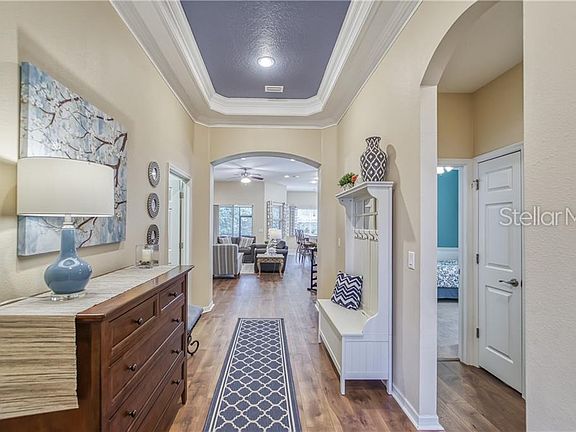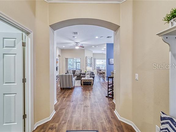 Welcome home! Beautifully maintained with loads of upgrades, this home is move-in-ready! The split floor plan offers the perfect setup, with master bedroom at the back of the home for a peaceful retreat. Master bathroom has separate stand-up shower and garden tub, ideal for an in-home spa day. Crown molding and high ceilings give the space a luxurious feel. Kitchen boasts brand new granite countertops, breakfast bar, and sit-in eatery, with separate dining room. Step outside to the extended lanai and enjoy plenty of room for entertaining! Choose to stay in the large screened in-space, or move outside to the pavered patio area. Sitting on a .27 acre lot, this site is fully fenced for privacy, pets, or play sets. Make this Oak Creek gem yours!