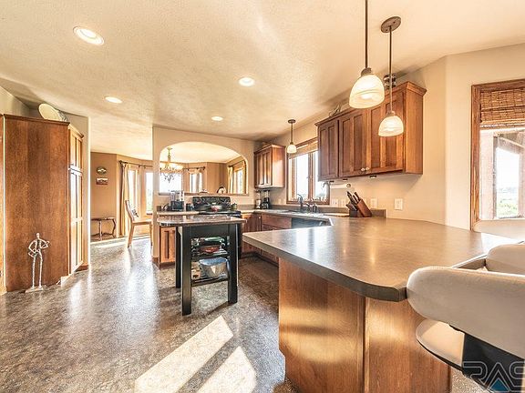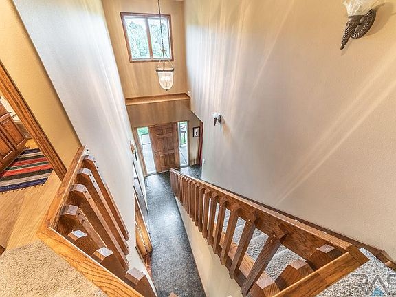 A charming two story home on a 1.38 acre lot between Brandon & Sioux Falls. The exterior includes a side entry three car garage, boulder wall landscaping and a cascading fountain. The main floor includes a living room with a gas fireplace, formal dining room with arched opening to the kitchen. In the kitchen you will find birch cabinets and a center island with granite top. The family room is adjacent to the kitchen and includes a sliding door to the large covered deck with stairs to the back yard. Four upper level bedrooms including the master suite that has a vaulted ceiling, walk-in closet, whirlpool tub and separate shower. There is a large bonus 4th bedroom over the garage that can be utilized as a toy room, office or workout area. The recently finished lower level boasts a wood burning fireplace in a walkout family room. Connected to the family room is a large billiards area with a wet bar.