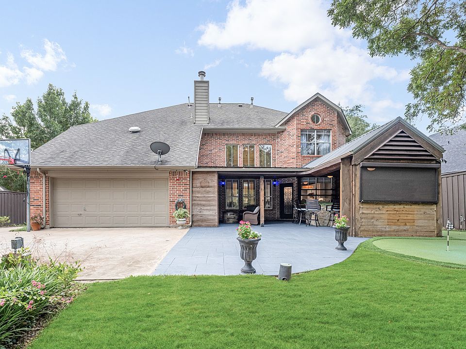 Welcome to your private retreat in the highly sought-after Rockwall School District! This beautifully updated 5-bedroom, 3-bathroom home is ideally located on a large, tree-filled lot just a short walk from scenic Lake Ray Hubbard. Enjoy exceptional outdoor living with a covered patio that features a built-in bar, retractable screen, and custom shades—perfect for entertaining year-round. The backyard is a true showstopper, complete with a private putting green, two storage sheds, a greenhouse in a well-manicured berm, 30 amp RV hookups, and a privacy gate for added seclusion. Inside, the home offers spacious living with modern upgrades throughout, including plantation shutters, a large gameroom, and a beautifully tiled kitchen. The luxurious master suite features heated floors in the bathroom, creating a spa-like experience you’ll love. With its prime location, top-rated schools, and standout amenities both indoors and out, this home offers the perfect blend of comfort, style, and convenience.