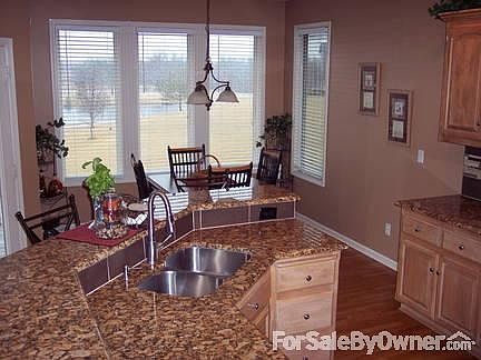 Wake up every day to a beautiful view of the historic Woodneath Farm from your master bedroom, living room, hearth, kitchen and recreational room. This 3,466 sq. ft. 1-1/2 story walkout, 4 bedroom, 4-1/2 bath home features lots of extras including master bedroom with see through fireplace and Jacuzzi, finished basement with 9ft ceiling, oversized patio wired for 220v (for hot tub), cedar deck, sprinkler system, security system, vinyl clad windows, wrought iron spindles, hardwood floors, humidifier, garage door openers, and basement storage with oversized utility door for lawn access, Google Fiber connectivity. Neighborhood pool, tennis court, walking trail. The house also faces west to enjoy your deck and patio in the evening shade. A great location that is just a short walk to Shoal Creek Elementary, the Mid-Continent Public Library, restaurants and shopping. Quick access to I-35 and I-435. Liberty School District.Additional property info: http://www.forsalebyowner.com/listing/4-bed-Single-Family-home-for-sale-by-owner-8801-N-FARLEY-AVE-64157/24008300?provider_id=28079