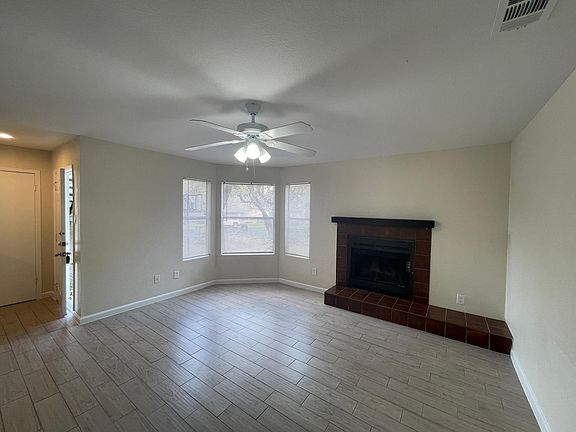 Rare 1-bedroom unit w/1 car attached garage. Very clean and spacious, no carpet, open kitchen with refrigerator & breakfast area, wood tile, fireplace, private patio, good size master bedroom with attached full bath and very large walk-in closet, washer & dryer connections off the kitchen. Freshly painted! Pets negotiable, $400 deposit per pet. Water fee of $50 for one tenant, $75 for two. Combined monthly income before taxes must be at least 3 x the rent, credit over 600, good rental history.1 pet allowed, dogs under 35 lbs. Application fee is $60 per person over 18.
