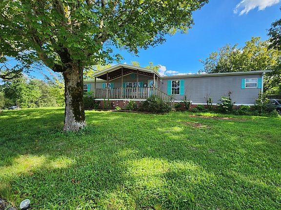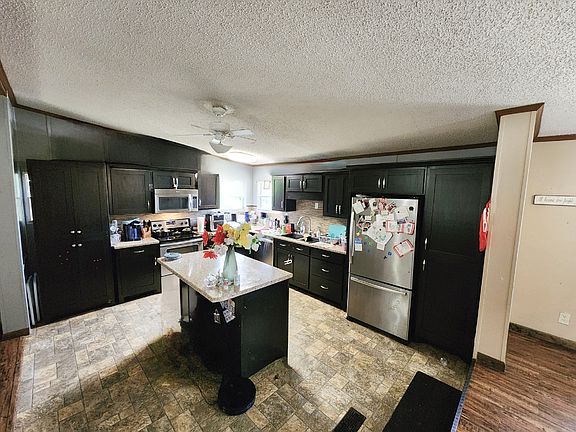 Cozy Home Alert! This 3 Bedroom, 2 Bath Manufactured home on a permanent foundation sits on almost an acre lot!! It offers a storage shed, detached 2 Car Building as well as a HUGE RV Carport! The Roof and HVAC were replaced in 2022 as well as a whole home water softener and purification system added! Home has an additional Rec Room with a beautiful gas fireplace and open floor plan! Above Ground pool needs a new liner but pump/filters still work!