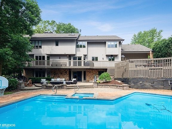 A private family oasis like no other! Imagine nearly .7 acre of pure wooded privacy. Watch the video to fully appreciate this special property. It's a place where it's just your family-and those who you invite-to enjoy your entertainment mecca. A Ritz Carlton-sized in-ground pool with hot tub, expansive patio and deck areas as well as an outdoor tap for your favorite beverage. The contemporary-designed home integrates seamlessly with the outdoors. Dramatic 15+ foot vaulted ceilings everywhere. A new kitchen/laundry/mud room area that will impress.