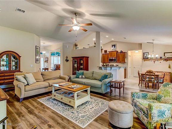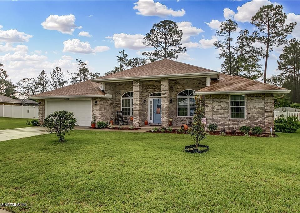 Fall in love with this 4/2 + offices floor plan & the beauty of the fenced back yard. One of the best lots in this small community of brick homes. Offers the feel of privacy w/plenty of room to add a pool or garden. Durability & easy care of the vinyl plank flooring & the attractive 12'' x 20'' tile are upgrades to be enjoyed. Double windows w/sunbursts allow extra natural light to filter in. Well designed kitchen provides plenty of workspace, granite counters, 42'' cabinets + pantry. Enjoy casual dining at the bar or breakfast room or special meals or entertaining in the dining room. This spacious great room with a vaulted ceiling opens to the back porch (easily screened if desired), paver patio is perfect for grilling. Gutters along the full roof line, & cul-de-sac location.