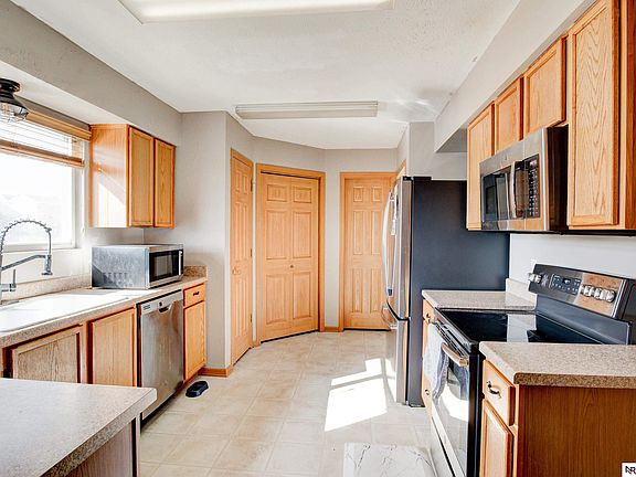 You'll find delight in every aspect of this charming residence! Situated on a corner lot in the Meadow Ridge subdivision within the esteemed Bennington school district, this two-story home offers a plethora of appealing features. Upon entering, you'll be enamored by the captivating design details. Vaulted ceilings create an expansive atmosphere, while the updated Luxury Vinyl Plank (LVP) flooring seamlessly extends through the living and dining areas, providing a cozy ambiance complemented by neutral-toned paint. The kitchen offers a picturesque view of the backyard, and nearby, you'll discover the laundry room and a convenient half bath. The second story accommodates three bedrooms, a full bathroom, and a private en-suite bath in the owner's suite, complete with a walk-in closet. The lower level serves as a finished recreational space with ample daylight streaming through the windows, offering a perfect retreat from the hustle and bustle of everyday life.