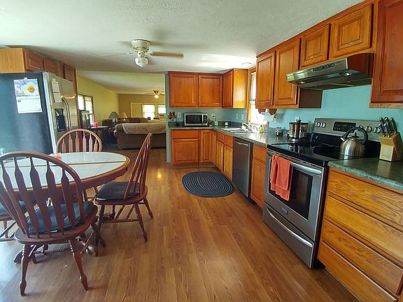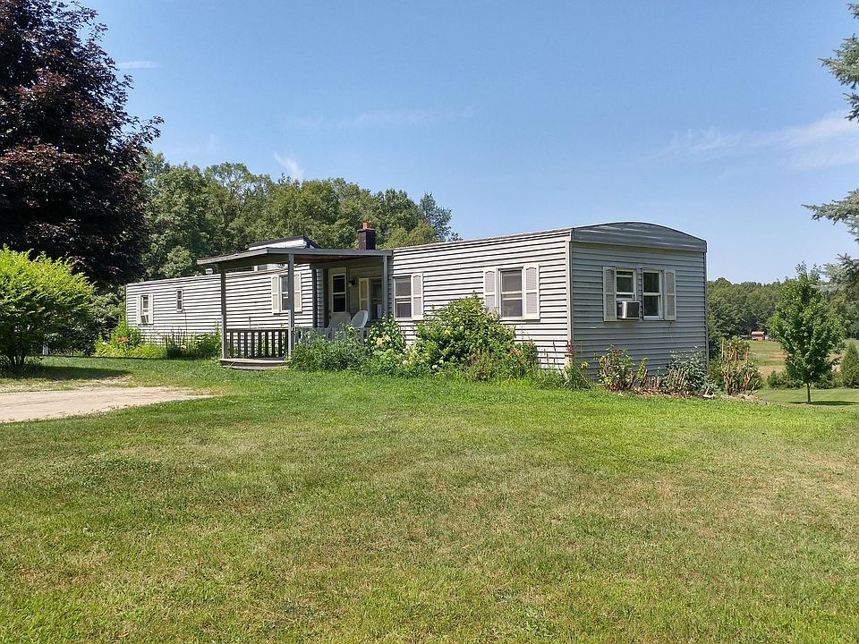 Beautiful country 2.35 acres. Rolling with large Blue Spruce and Walnut trees. A lot of work has been done with this mobile home. Big updated kitchen with stainless appliances. An addition in the back for a large 2nd bedroom with plenty of light. The basement is under the addition to house the utilities. The big pole barn and the smaller barn (maybe for a pony) in back will come in handy. Open House Tuesday 5-7 PM Come see for yourself.