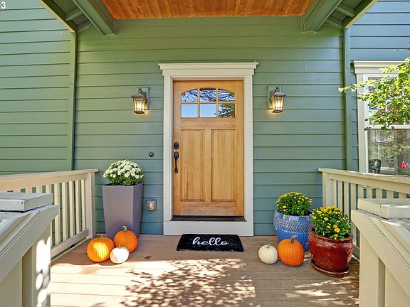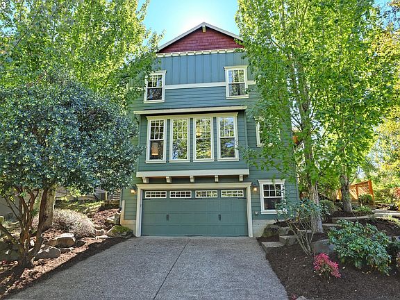Charming Craftsman in SW Portland. 3 Bedroom + 2.5 Bathrooms. Light and Bright with gleaming hardwoods and large windows throughout. Great Room floor plan features built-in bookshelves, gas fireplace and territorial views. Chef's kitchen with eat bar opens to sunny dining room with access to deck. Primary suite with soaking tub, walk-in shower, walk-in closet and additional closet. Great outdoor space including inviting covered front porch, side deck and wrap around stone patio. Raised garden beds. Solar panels & oversized 2 car garage with custom built-ins. Dream location near neighborhood parks, Multnomah Village and Garden Home.