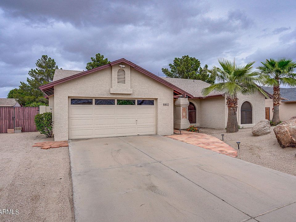 **REMODELED BLOCK HOME READY FOR MOVE IN** LARGE N/S EXPOSURE LOT WITH RV GATE & PARKING IN A NON HOA NEIGHBORHOOD! INTERIOR FEATURES INCLUDE NEW KITCHEN W/QUARTZ C/TOPS, STAINLESS KITCHEN-AID APPLIANCES, 42'' SOFT-CLOSE CABINETRY W/OVERSIZED CROWN MOLDING, DEEP SINGLE BASIN SINK, TILE BACKSPLASH, VAULTED CEILINGS, SEVERAL NEWER WINDOWS (BLINDS T/O), CEILING FANS, TILE FLOORING, BRICK FIREPLACE, 2-TONE PAINT SCHEME, INSIDE LAUNDRY ROOM, UPGRADED BATHROOMS WITH TILED SURROUNDS & STACKED STONE ACCENT WALLS, DUAL SINKS IN MASTER BATH + MULTIPLE SPRAYERS IN SHOWER. ROOF, A/C & WATER HEATER REPLACED IN 2021! OUTSIDE YOU'LL FIND SUNSCREENS, SOFT WATER LOOP, COVERED PATIO W/FANS & LIGHTING, STUCCOED & PAINTED BACK FENCING. LOCATION CLOSE TO LOOP 101 FREEWAY AND CONVENIENT TO ENTIRE NW VALLEY.