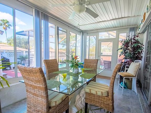 Double Master Pool home!! Open floor plan with a huge Family Room....perfect for entertaining and a large family. The Master Bedroom addition in 2009 is huge with a large walk-in closet. The updated kitchen has stainless appliances and ample nice white cabinets and a ton of counter space. The enclosed Florida room has upgraded windows that allow for year round use. The home also has had upgraded double pane/ upgraded frames with E glass for sound-proofing and low energy bills. The soaring ceilings lend a spaciousness to the open main living area that is amazing. All this and a gorgeous screened in pool. A custom Gazebo with a new pump installed in 2016 awaits you for your enjoyment and relaxing!! Water heater was replaced in 2013 with a glass tank...no rust here! All this and low HOA and NO FLOOD!!
