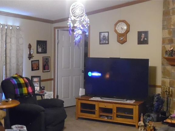 This is the one you've been waiting for! Beautiful and Sprawling Home with 4 beds 2 living, large utility mud room, spacious open floor plan with Master located at one end of the home and all bedrooms and 2nd living at the other! 2 beautiful wood burning fireplaces in each living, storm shelter, oversized with side wall protect carport, and all located on a quiet and private 5 acres only 1 mile off blacktop! Wild blackberries, peach trees and wildlife abound . . . this is a sweet country spot!