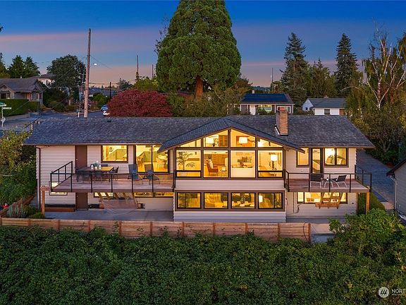 Stunning views of the Puget Sound and mountains! This mid century modern has been beautifully remodeled with designer finishes throughout. Perched up high in the desirable Fauntlee Hills neighborhood feels like you're looking out of your private tree house. The living room's vaulted ceilings and wall of windows showcase the magnificent views, but the views don't stop there. Almost every room in this house tells a story with the Puget Sound views. Main floor also consists of the designer kitchen & dining, primary suite and additional bed & bath. Lower level is another large bedroom, bathroom, 2nd living room, den and the laundry/mud room of your dreams. No detail was spared in this renovation, where modern amenities meet mid-century design.