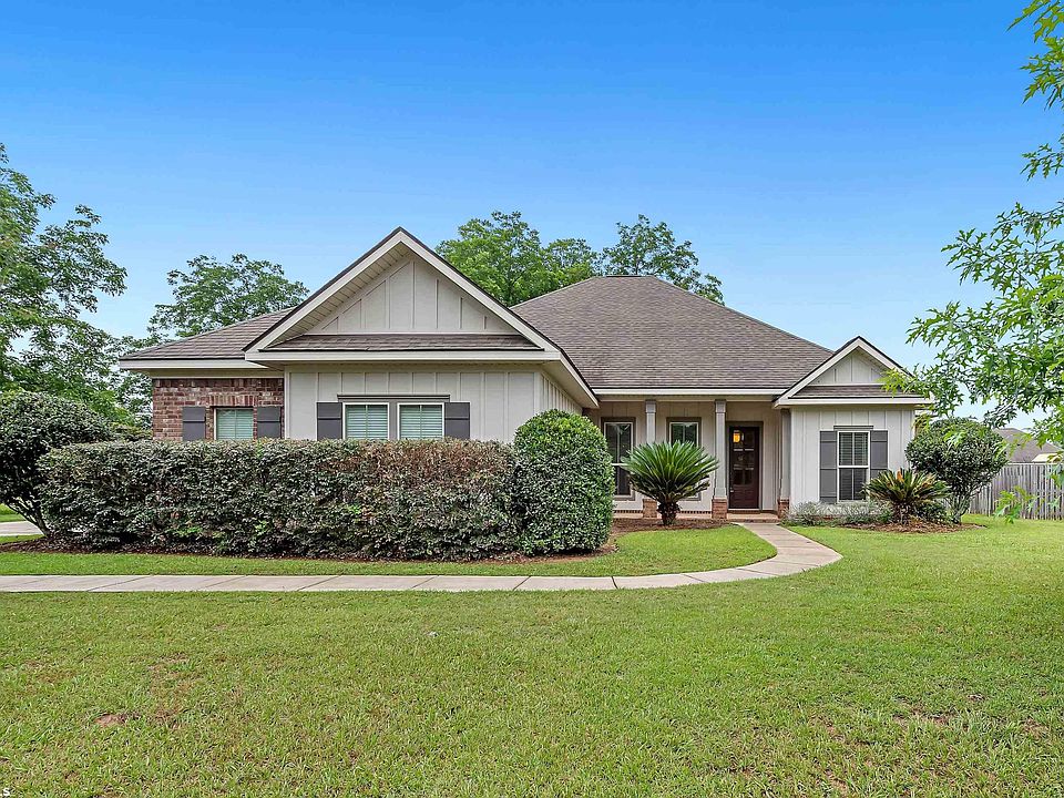 You will not believe this deal. Beautiful 4 bedroom Truland built Home in sought after Brookhaven subdivision. Wide open floor plan with with a large bonus room upstairs that could also be used as a 4th bedroom complete with a private bath. Home features scraped hardwood floors, granite counter tops, tall ceilings, lots of kitchen cabinets, gas cook-top, tile in wet areas, low-E vinyl windows, custom kitchen cabinets, primary bath with and en-suite and a sitting area, sprinkler system, two car garage, flat fenced in corner lot and much more. Short distance to the following: Daphne East, Middle, Elementary and high schools. Daphne dog park, Al Trione Park, and Daphne YMCA. Brookhaven is located across the street from Trione Park.