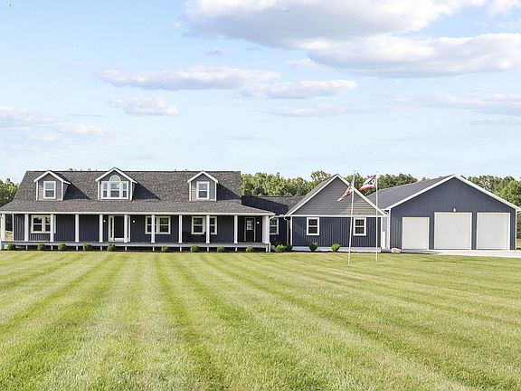 Welcome to 8803 Kilbourne Rd. This meticulously updated cape-cod offers it all! Over 4,200 sq ft living space, 5.21 acres, pond and 48x84 steel building with oversized doors for your RV, ATV, boat, or other toys. First-floor master suite. Open concept kitchen with marble countertops, high-end cabinetry, and island. Oversized mudroom/laundry area, freshly updated bedrooms (4) and bathrooms (3.5). Basement living space includes a full kitchen, bedroom, bath, and separate exterior entrance. City water and water softener. Fiber optic. Some updates include: Oversized Waterproof Flooring, Tankless Hot Water '22, Windows, Board&Batten + Cedar Shake Siding, Fascias, Soffits, Roof, 6 inch Gutters '21. Concrete Driveway '21. Don't miss out on this opportunity!
