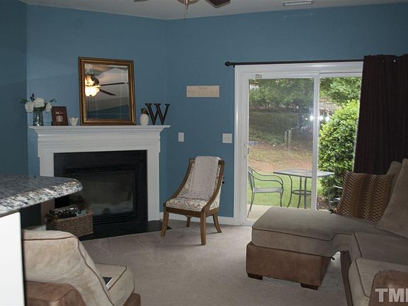 Charming Townhome with covered Front Porch located in the Townes at Umstead! Home boasts HWs in Dining Room and Kitchen, Kitchen with granite,tile backsplash, island,black appliances & pantry! Living Room has bar area, gas FP with mantle and sliding glass doors leading to the patio for entertaining, 2 large bedrooms, both w/full bathrooms & large closets, Master has vaulted ceiling. Storage room located off patio. Umstead Park is right around the corner! Convenient to 540 & shopping. MUST SEE!