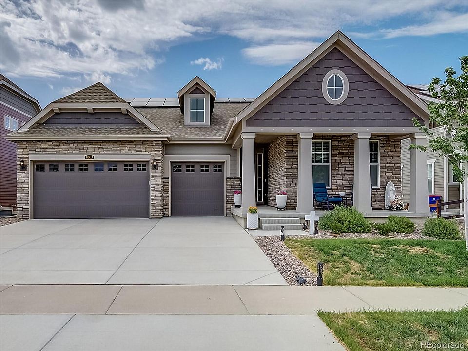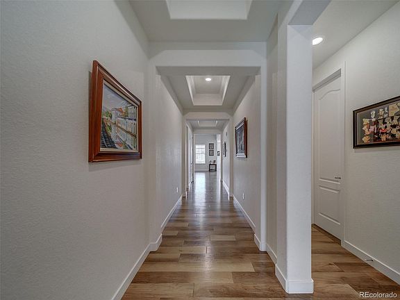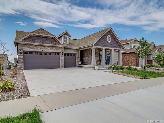 Welcome to this move-in ready ranch style home where you'll find comfortable living and modern conveniences. The home is decorated with warm neutral colors throughout and has plenty of natural lighting. The majority of the main floor has gorgeous brown hardwood flooring. The gourmet kitchen is ideal for cooking large meals for family and guests and is equipped with granite countertops, gas cook top, built-in double ovens, stainless appliances, and an oversized pantry. Entertaining is a breeze with this open floor plan. Enjoy your morning cup of coffee on the front porch or even the covered back deck. The primary bedroom with private bath has an abundance of space for large furniture. There are 2 additional oversized bedrooms on the main floor. One of the bedrooms has its own private bathroom. The appliances, thermostats, and lights can all be controlled remotely using a smartphone. The home is centrally located and just a short drive to Southlands shopping center, 5 minutes to Parker, and 20 minutes to DIA.