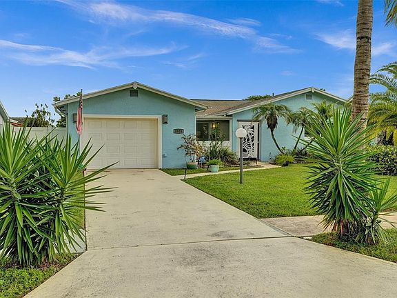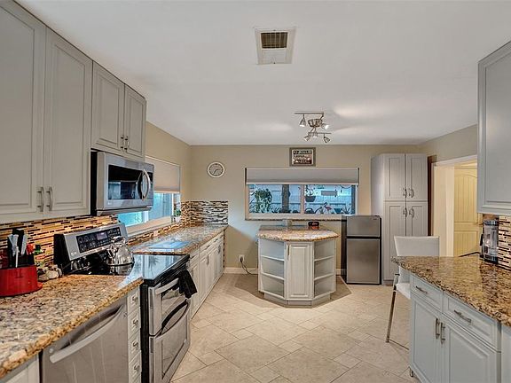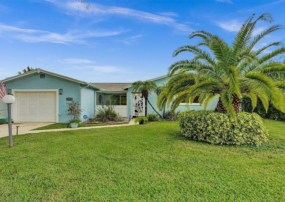 Discover your dream home! This stunning 3-bedroom, 2-bath single family residence with a den and a 1-car garage is waiting for you. As you arrive, you’ll be greeted by a lush tropical landscape featuring palm trees. Step into the inviting screened front porch and feel instantly at home. Updated kitchen is a chef's dream, boasting granite countertops, stainless steel appliances, ample storage, and a spacious island. AC 2022 and 2024 water heater 2024. Additional highlights are stylish tile and vinyl plank flooring throughout, crown molding, hurricane impact-windows and doors, a hurricane-rated garage door, and a fully fenced yard complete with a pergola a beautiful hot tub recently added and low-maintenance artificial turf. Relax on the screened patio perfect for entertaining! With no HOA!