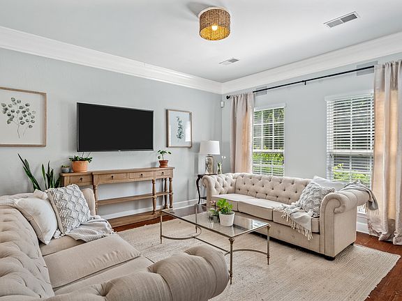 This spacious beauty in award-winning Lenox Village will win your heart. It features tall ceilings, an open floor plan, and a primary suite on the main level. This unit faces a green space and trees, making the home quieter and more private. The backyard is perfectly sized. Enjoy the vaulted ceiling in the primary, along with a walk-in closet. Upstairs, enjoy 2 nicely sized bedrooms with an authentic jack-and-jill bathroom setup. An additional small living space is also found upstairs, which is perfect for TV, reading, or a small office. This 3 bedroom/2.5 bath is a true gem and one of a kind. Walk to eateries, shopping and various retail establishments. The playground, trails, and pavilions throughout make for great outdoor living. Hurry! This one will go fast!!!!