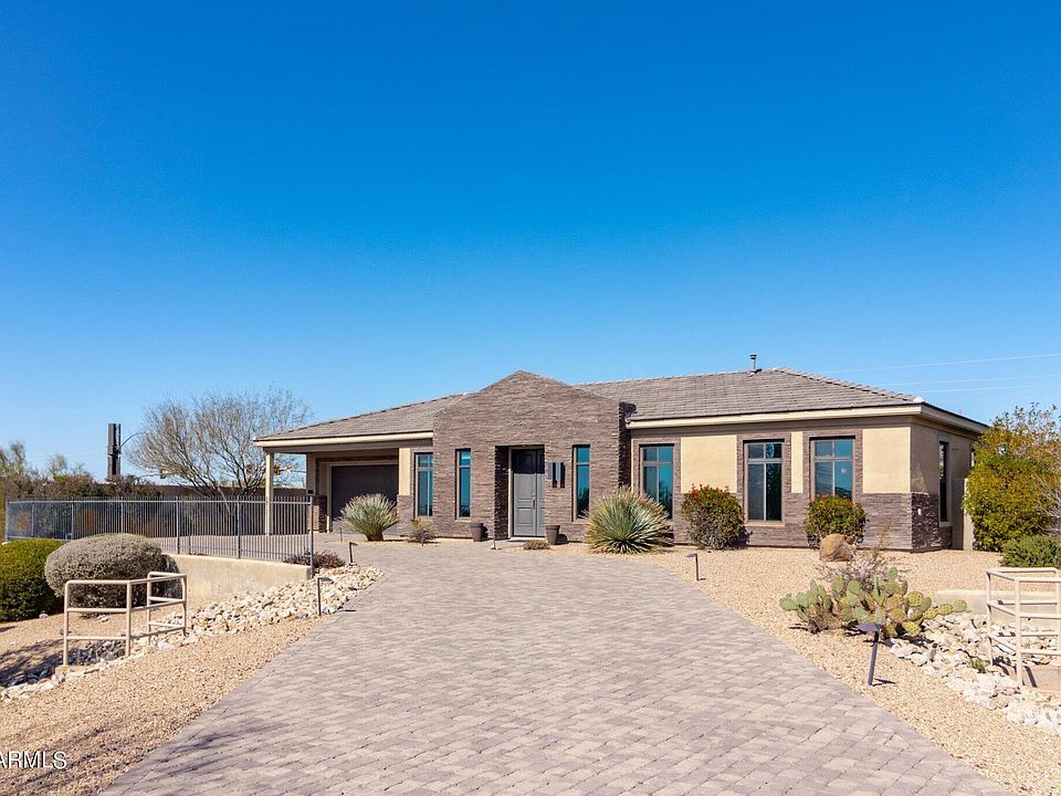 This is a beautiful contemporary Piet Boone designed home located in the very secluded Pinnacle Peak Place subdivision. This immaculate 5 bedroom, 4 bathroom home is North Scottsdale living at its best. Relax in your resort style backyard, with Casita for out of town guests. This home also boasts a 3 Car Garage, diving pool, spa, 2 fireplace/seating areas, putting green, outdoor BBQ and exceptional views. All of this on 56,347 square feet of land with breathtaking sunsets views. This is priced to sell! The home is being sold furnished with beautiful decor. This home is truly move in ready.