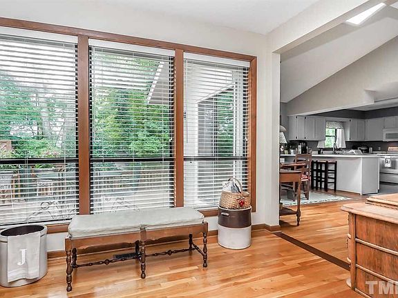 Showings begin tomorrow August 4th. Great North Raleigh Ranch. Home situated on back of cul-de-sac. Welcoming entry foyer! Nice hardwood flooring. Kitchen with counter bar open to living room with wood burning fireplace. Formal dining room for entertaining. Owners bedroom with separate access to over sized deck. Private bath and walk in closet.Two additional bedrooms are generous in size. Two car garage, walk in crawlspace.Convenient to I-540, shopping and entertainment. Community swim and tennis!