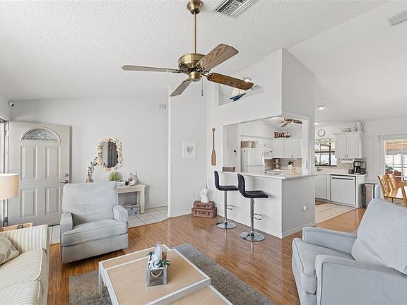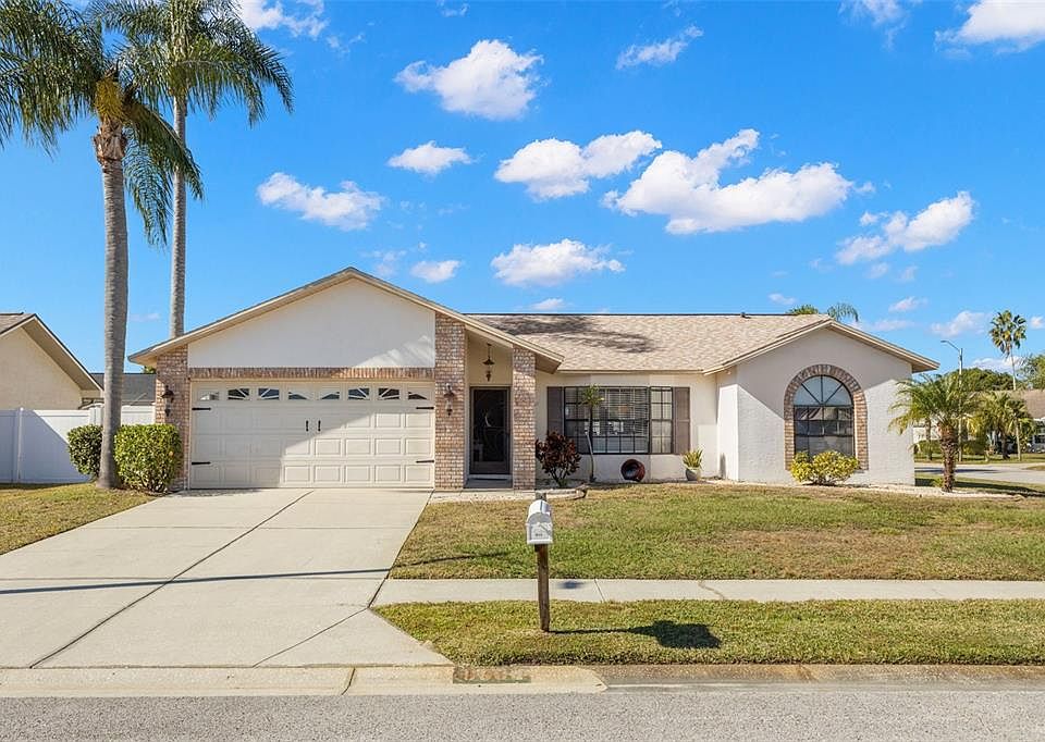 Move right into this lovingly maintained 3-bedroom, 2-bath pool home featuring a desirable split floor plan, corner lot, and fantastic location, complete with a 2025 roof! From the moment you step inside, you’ll appreciate the vaulted ceilings and the open, airy feel of the living room, dining area, and kitchen, creating an inviting great room perfect for entertaining. The kitchen offers a breakfast bar, ample cabinetry, and easy flow into the dining area. Just off the dining space, French doors lead to your covered outdoor living area and screen-enclosed lanai, where a beautiful pool takes center stage—ideal for relaxing or hosting guests year-round. The primary suite is thoughtfully positioned for privacy and features a large wall closet and an en-suite bathroom with a generously sized step-in shower. A convenient storage closet is located just outside the suite. On the opposite side of the home, you’ll find two additional well-sized bedrooms, each with wall closets, and a hall bathroom with an updated vanity and a tub/shower combination. Barn doors offer the option to further separate and define the space. The two-car garage houses the washer and dryer and provides additional storage. Outside, the backyard offers plenty of room to enjoy Florida living, including a brick paver patio perfect for extra dining or lounge space. Don’t miss the opportunity to see this wonderful home—schedule your showing today!