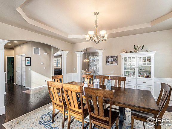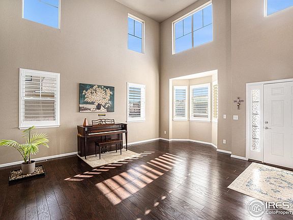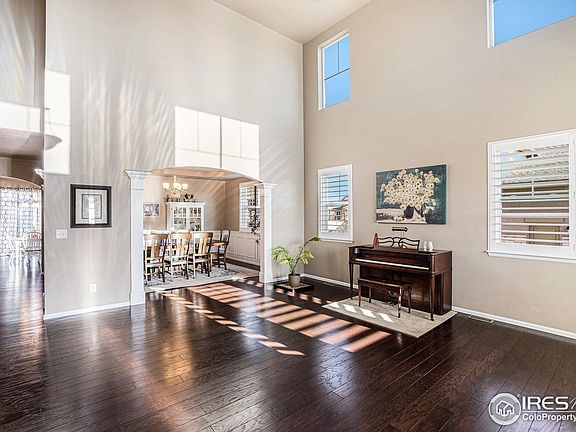 Welcome to this stunning property featuring a coveted second Master Suite on the main level. With premium luxury finishes and custom window treatments, this home combines elegance with functionality. Located in Firestone, you can enjoy the nearby Saddleback Clubhouse for dining, golfing, and outdoor relaxation.The home boasts ample living and entertaining space, complemented by an abundance of natural light pouring in through the many windows. Its thoughtfully designed layout includes five bedrooms, five baths, and a seamless blend of formal and informal living areas, including a gourmet kitchen. The unfinished basement offers high ceilings and egress windows, providing an opportunity for customization to suit your preferences.