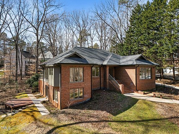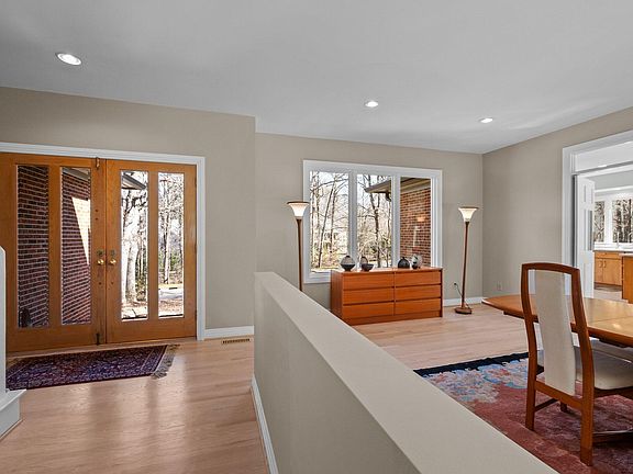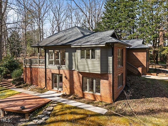 Stunning Renovated Soft Contemporary nestled in the woods of Wildwood Green! Jack Satterwhite built with art deco custom moldings, milled cedar siding, huge windows overlooking natural beauty. 2024 Total Kitchen,Primary Bath /Laundry renovation by Harken Construction. All custom, all permitted! First floor primary, 2 bed on lower level, full bath and large basement storage.2nd floor ensuite bed/office. Wide hallways (wheel chair accessible on main level) ,Cathedral and 9ft+ ceilings! Gently lived in and impeccably maintained. Minutes to 540, restaurants and shops.