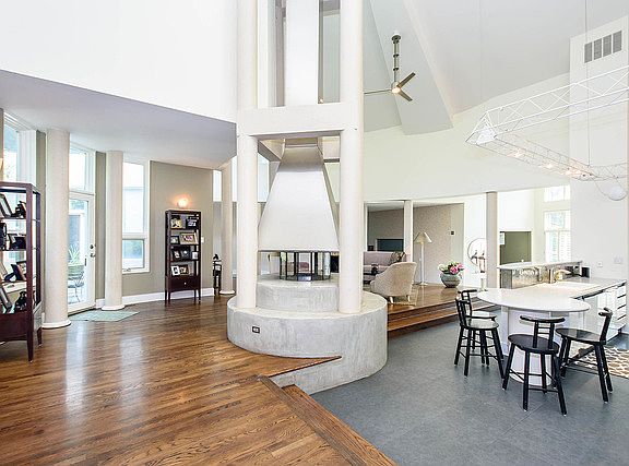 Exceptional 4 bedroom, 4.5 bath contemporary home, nothing like it has ever been created. Designed by award-winning architect Lonn Frye. Very impressive entrance foyer with expansive ceiling and lots of light. Soaring 35-foot ceilings in kitchen/living/great room. Center wood-burning fireplace highlights the living space. Expansive walls-of-windows bring in incredible light. 4 bedrooms, each with en suite bath. Master bath has separate shower. Den has a Murphy bed and separate bath. Beautiful private office off master bedroom. Theatre, game room and exercise room in lower level. Distinctive living in a fantastic home.