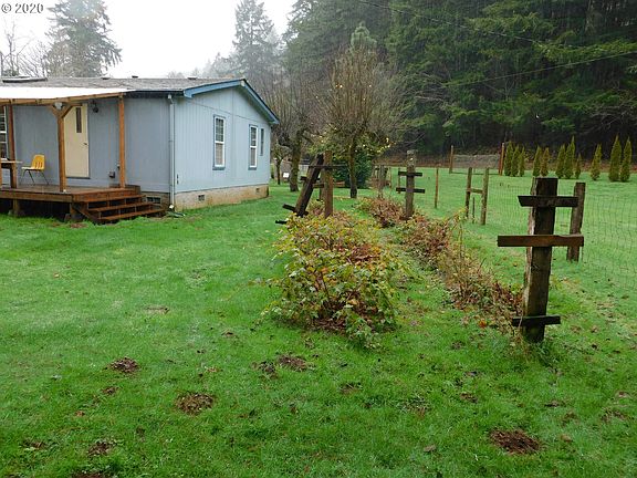 This hard to find, affordable, cozy home on 2.68 level acres is nestled between a quiet paved country road and a soothing, babbling creek. Mature rhodys and evergreens flank a large open field suitable for gardening or animals. Grapes and berries plus well tended fig, apple, pear, and plum trees will give you fruit galore. The multiple outbuildings have lots of potential, use your imagination. Certified wood stove keeps the home warm and welcoming.