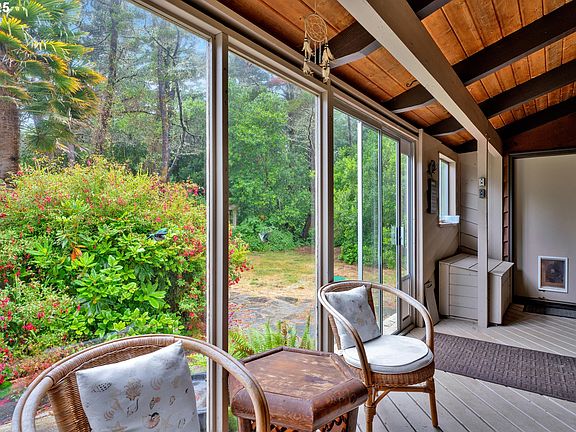 Welcome to 88046 Woodlands Dr, a warm and inviting 1,596 SF chalet-style home nestled on a beautifully wooded 0.48-acre lot. This well-maintained property is being sold completely furnished and is currently operating as a successful short-term rental, offering immediate income potential or a move-in-ready retreat.The light-filled living area features vaulted cedar-beamed ceilings, large windows, and a new pellet stove (2025) for cozy comfort. The updated kitchen is equipped with slate flooring, granite countertops, a skylight, breakfast bar, and newer appliances. A separate family room with a sliding glass door leads to the spacious back deck, ideal for relaxing or entertaining.The primary bedroom includes two sets of double closets, and the second bedroom has its own private half bath. Additional upgrades include newer carpet, a new roof (2025), and a newer hot tub in the fully fenced backyard.Enjoy year-round comfort with a covered front porch, enclosed entry, and tranquil outdoor space. The detached garage includes a workshop area and carport, plus a private-entry bungalow-style bonus room off the garage—perfect for guests, a studio, or home office.Don’t miss this rare opportunity to own a beautifully updated, fully furnished income property in the heart of the Woodlands. Schedule your private tour today!