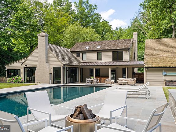 Welcome to this masterfully renovated home on almost an acre in Bethesda’s sought-after Bradley Hills Grove neighborhood! Both the interior and exterior provide limitless opportunities for large-scale entertaining or more intimate family gatherings. The carefully thought-out renovation is clearly reflected in the open floor plan, which allows for a seamless flow among the main level’s spacious and light-filled rooms, which include a Living (or Music) Room with gas fireplace and Dining room, both of which have large windows overlooking the beautiful, treed lot; and a private den/office with built-ins. The Great Room with 13’-high cathedral ceiling features a floor-to-ceiling stone wood-burning fireplace and a beautiful butterfly glass wall that opens to the pool, patio, spa and breezeway. An atrium door leads directly to the breezeway and three-car garage. The Gourmet Kitchen with floor-to-ceiling cabinetry and a center island provide wonderful space for even the most accomplished cook The Kitchen and Informal Eating Area each have 13’ ceilings with three skylights. There is also an atrium door to the backyard. If a first-floor Primary Bedroom Suite is on your wish list, this one is sure to delight! The Bedroom has two floor-to-ceiling windows overlooking the treed lot and a large, fully organized walk-in closet with an atrium door for easy access to the back yard. The Primary Ensuite Bathroom with oversized shower, custom glass door, and oval stand-alone tub also has two floating vanities with marble counters, mirrors, and custom lighting. A special highlight of the first floor is the beautiful, architect-designed staircase with glass, wood, and steel that leads to the upper level. The second floor has three large bedrooms, one of which has a secret Playroom! Another has its own ensuite full Bathroom with skylight and tub/shower. There is a hall Bathroom as well. The walkout lower level provides endless possibilities! The large Family Room has a tile wall with wood-burning fireplace and large-screen TV. Exercise aficionados will delight in the gym with a mirrored wall and exercise equipment, TV, and media closet, and refrigerator-freezer, all of which will convey. A fourth full Bath is adjacent to the Gym. There is also a separate Laundry Room with built-in counter with sink and cabinets, and drawers plus G.E. front-load washer and dryer with drawers below. The Utility Room houses two 75-gallon hot water heaters and Carrier furnace for the three heating/AC zones in the house. The outside is equally extraordinary! The large saltwater pool with electric cover surrounded by an extensive patio is a wonderful place to relax. The adjacent hot tub has a recirculating fountain. And there is still plenty of yard to enjoy outdoor games or just lounging! Located close to downtown Bethesda’s numerous dining, shopping, and entertaining opportunities, it also enjoys easy access to all that our Nation’s Capital has to offer, as well as Northern Virginia and the area’s three major airports. Yes, you can have it all!