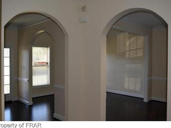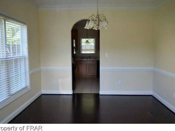 - 4 BED 2.5 BATH home is 15 minutes to the Honeycutt Rd Gate for quick commute to Ft Bragg. Beautiful formal living room and dining room. Large master suite with 12" Trey ceiling. Laundry Room is upstairs and tiled as are all bathrooms. Beautiful laminate throughout down stairs. Double garage and large fenced in backyard. Available now!