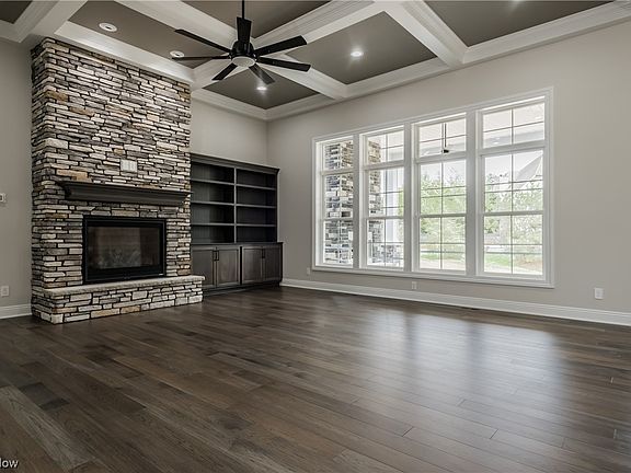 A wonderful almost 3,000 sq. ft. contemporary ranch home by A.C. Construction. Expansive great room with 12 ft. beautifully coffered ceilings completely open to a large kitchen. Stone fireplace with bookshelves. Very high-end kitchen with quartz counters and custom self-close custom-made cabinets. Wall oven and microwave, gas cooktop, too. Large walk-in pantry. Large dining room at end of kitchen which could double as a sunroom. All counters throughout the home are quartz. Spacious master with tented ceilings and a gorgeous ensuite with aver large and well-equipped walk-in closet. Secondary bedrooms each have an ensuite bath. Large covered patio with fireplace, an ideal spot for parties. Top quality and workmanship throughout the home. Lower level easily finish able with escape room and full bath. Builder will construct it at a low additional cost.