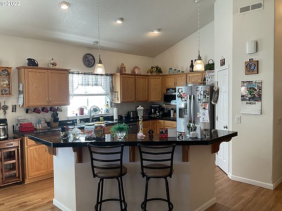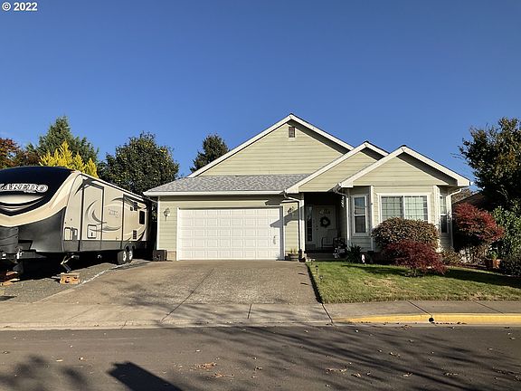Gorgeous, well maintained home, in a great neighborhood of Veneta! Home features an open concept with vaulted ceilings, modern kitchen, newer stainless appliances, granite countertops, and formal dining area, and electric fire place. Large master with bath and walk in closet. Home features a heat pump, hot tub included in sale, covered deck in the backyard, RV parking, and 2 car garage. Great location, close to shopping, don't wait on this one, make this your new home today!